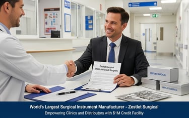 Największy na świecie producent narzędzi chirurgicznych, firma Zestlet Surgical, oferuje szpitalom, klinikom i dystrybutorom kredyty do 1 mln USD — umowa na jednej stronie, zerowe koszty początkowe, dostęp globalny.